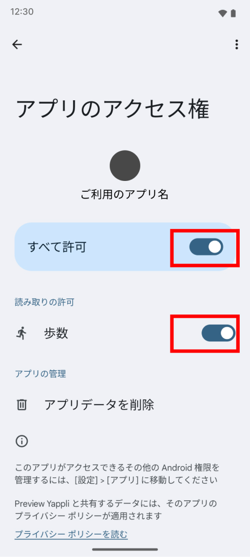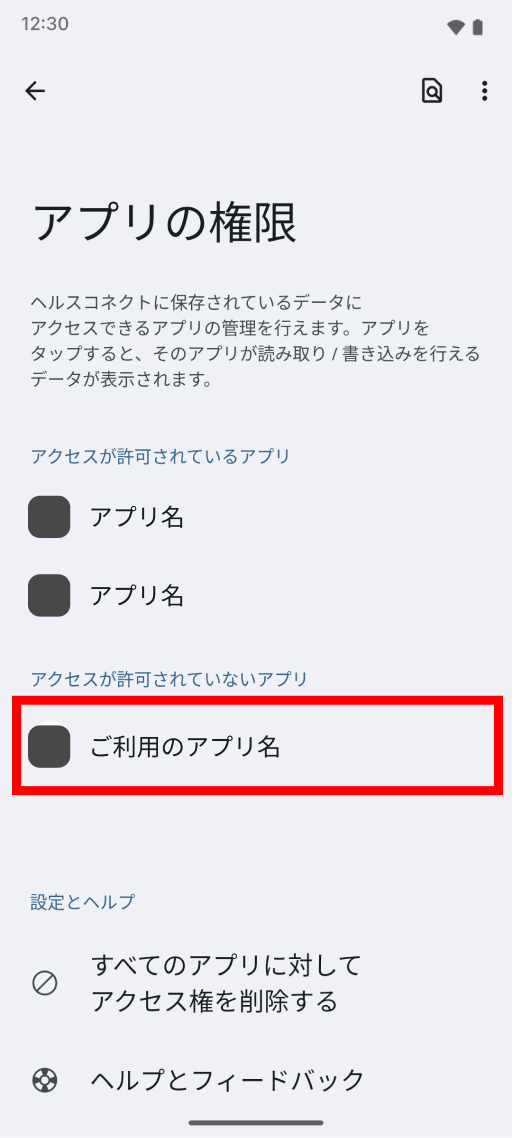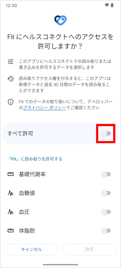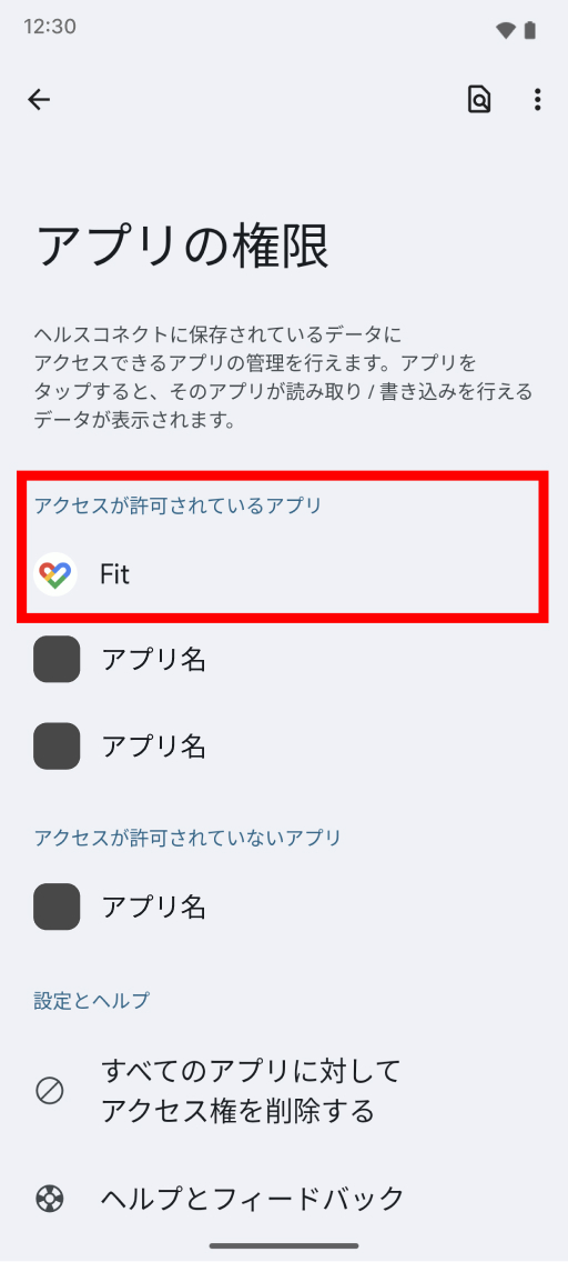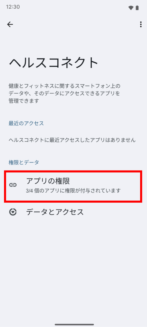 Google Fitのアクセスが許可されていない場合、以下の手順でアクセスの許可を行います。
