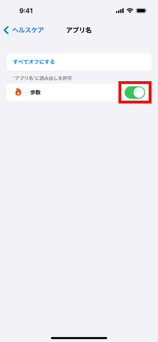 2.「歩数」のスイッチを入れる(ボタンが緑色に変わります)